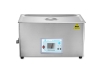 通過換能器,將功率超聲頻源的聲能轉(zhuǎn)換成機(jī)械振動,通過清洗槽壁將超聲波輻射到槽子中的清洗液。由于受到超聲波的輻射,槽內(nèi)液體中的微氣泡能夠在聲波的作用下快速變大破裂,破裂時產(chǎn)生的高強(qiáng)度剪切力作用于各類樣品上,從而達(dá)到清洗、提取、乳化、加速溶解、粉碎、分散等作用。